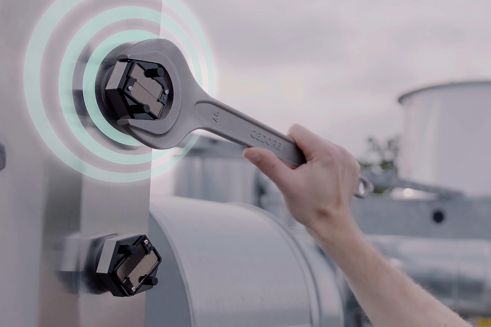 Un diseño alemán incluye sensores y un transmisor en la cabeza del bulón industrial, que alerta cuando se afloja; en otro caso, la cabeza del bulón cambia de color cuando no está ajustado correctamente.